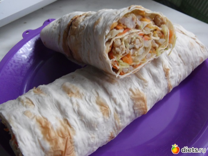 О рулет из лаваша с начинкой (фарш+морковь+лук+капуста, всё потушила)