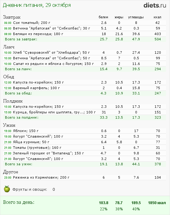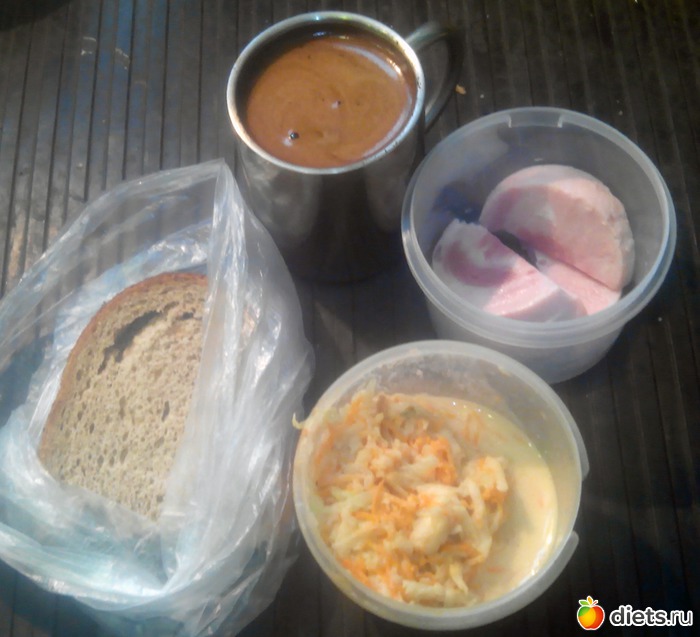 Самую, самую первую еду я не зафиксировал, но это был всего лишь стакан томатного сока и чуточку ветчины перед выходом из дома. Некогда было фиксировать.