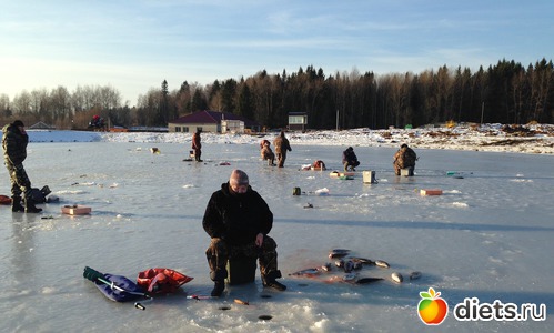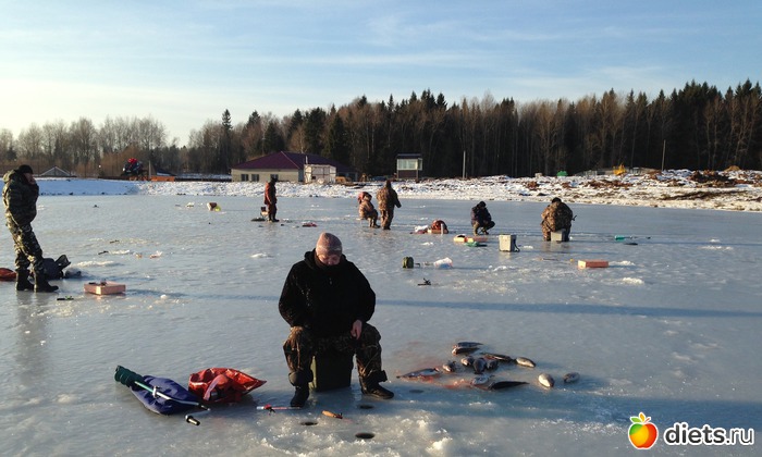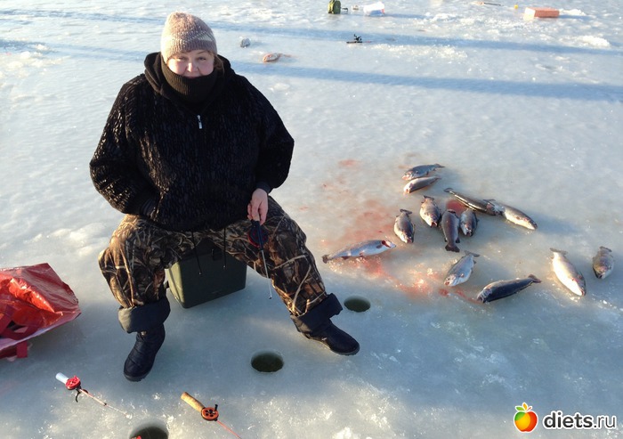 Это тоже зимой, Смешка ловит форельку! Тогда хороший был улов!