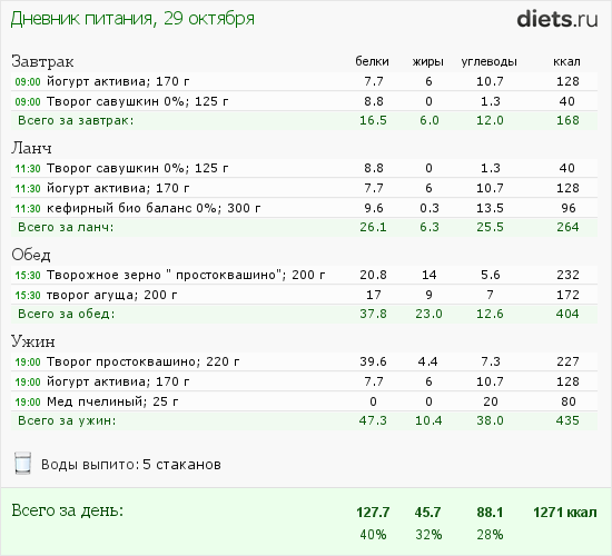 Пятый день лепестков подходит к концу! Сегодня наела творожных продуктов почти на 1300 калорий! Сегодня тяжко! И тошнило и с животом беда!