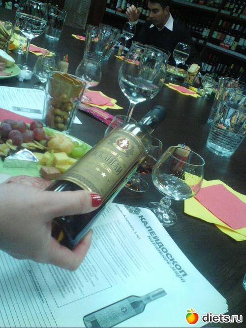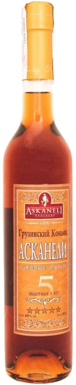 нам был предложен Грузинский "коньяк" Асканели 5 лет - прекрасно сбалансированный коньяк золотисто-янтарного цвета, изготовленный по классической коньячной технологии. По мнению производителей и продавцов имеет яркий аромат с тонами ванили, винограда и спелых фруктов. Во вкусе оттенки миндаля и меда. Рекомендуется употреблять со льдом в качестве аперитива или использовать в составе коктейлей.