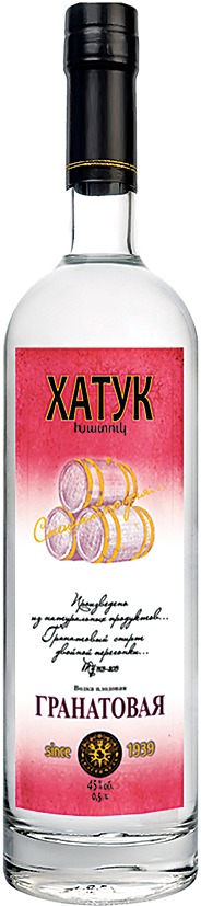 Первый образец - Хатук гранатовый - Гранатовая водка изготовлена из отборных плодов граната путем добавления чистейшей смягченной воды к плодовому дистилляту двойной перегонки. Пьется тяжело, спиртуозна, но приятно пахнет гранатом.