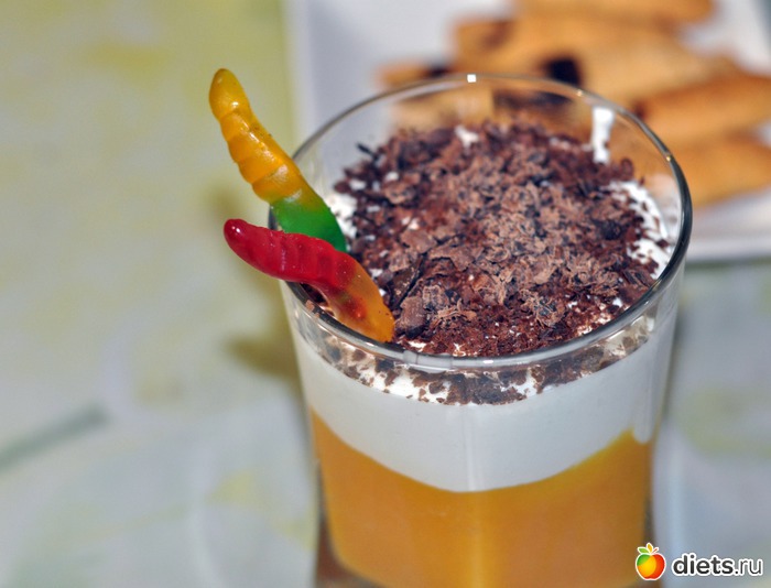 Это уже вполне съедобное для меня блюдо, червей, конечно, дети едят