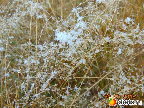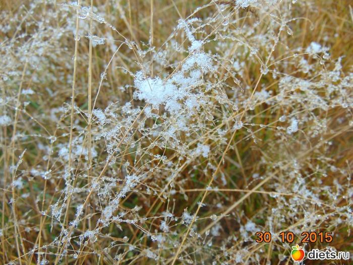 Его тоже заинтересовали снежинки-льдинки на ветках