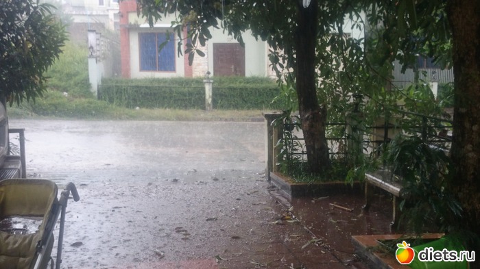 Потом занималась бассейном для детей, только налила и пошёл дождь.. Сразу с дерева кучу всего нападало, как закончится надо будет подметать, как раз по флай леди на этой неделе уборка у входа в дом..