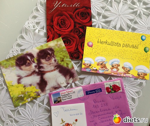 Да!!! Вот ещё что!!! Отчёт я начала писать в обед, а к вечеру мне пришли открыточки от нашей Танюши (onneksi)!!! Ой, мне так приятно! Я так рада! Спасибо милая, добрая Танечка за чудесные открыточки и душевное послание!