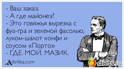 Понимаю, резко. Только поварившись в этом кулинарно-совковом котле хотя бы годика 3, можно понять мое к этому отношение. Мнение взято не "с потолка" и не от ненавистника майонеза, а основано на просмотре восторженных рецептов тухлятины под майонезом.