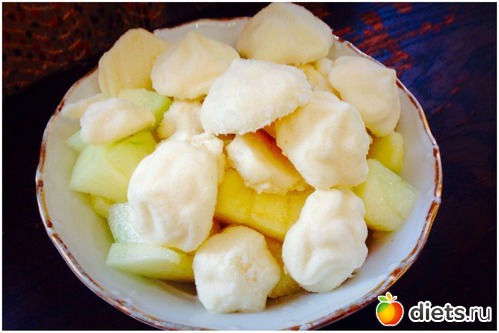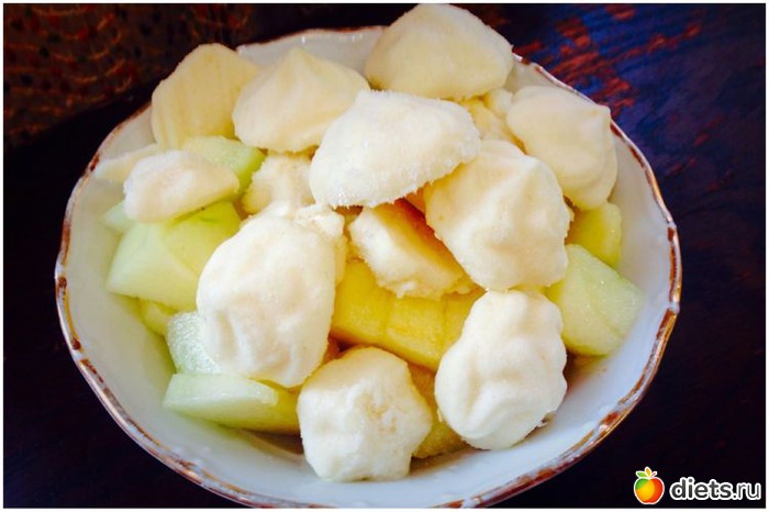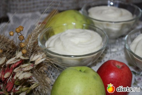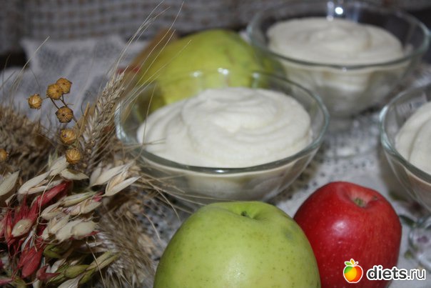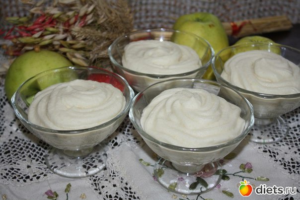 Рецепт родился недавно и случайно - хотела сделать зефир, но не получалась нужная консистенция, зато появился вот такой десертик. Если просто в холодильник поставить - консистенция как у мусса, а если в морозилку - через часик получается яблочное мороженко)