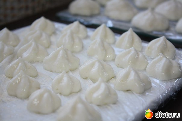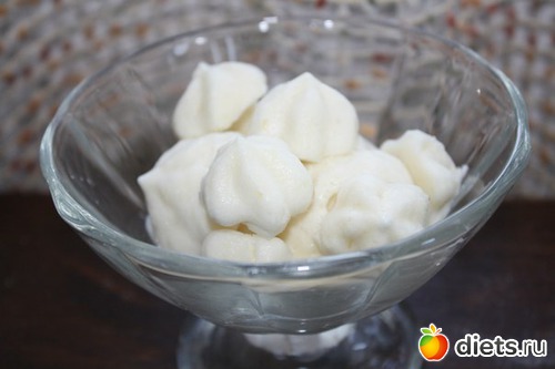 Дальше можно отсадить самбук в креманки и поставить в холодильник - получится нежнейший мусс. А можно с помощью насадки отсадить маленькие штучки на обтянутую пленкой поверхность и заморозить - тогда они легко отделяются и ими можно украшать десертики, добавлять во фруктовые салатики итд. (Я последнее время просто режу фрукты, добавляю эти маленькие ледышки и больше не заправляю ничем - и так вкусно очень. Или добавляю в молоко их и пробиваю блендером - получается вкусный коктейль!)