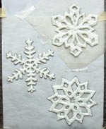 Трафареты надо накрыть сверху бумагой для выпечки или вложить в файлики и обвести толстым слоем рисунки клеем ПВА. Удобнее всего это делать, набрав клей в шприц. Примечание: рисунки для трафаретов лучше брать без множества мелких "внутренних" деталей и достаточно крупные, так как клей немного растекается и можно получить вместо изящного узора сплошное прозрачное пятно.