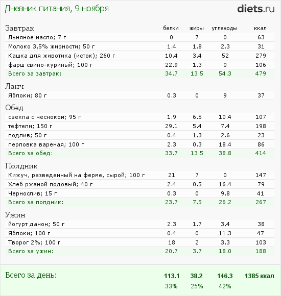 Калорийность продуктов