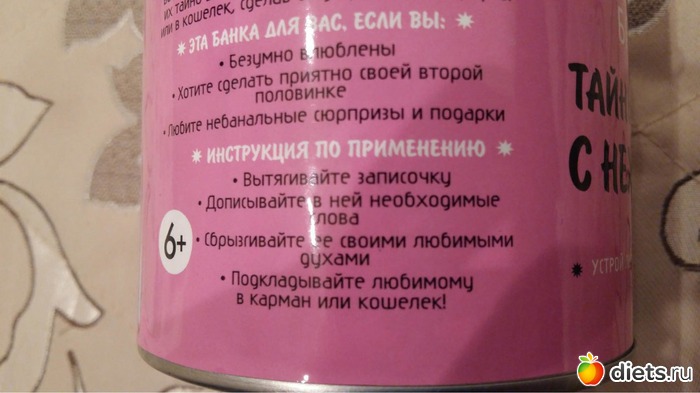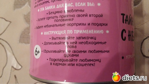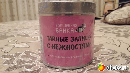 А еще я заказывала вот такую интересную "Волшебную баночку" с нежностями, буду теперь иногда подсовывать в карман или кошелек мужа записочки. Хоть он у меня и не особо романтик, но думаю оценит