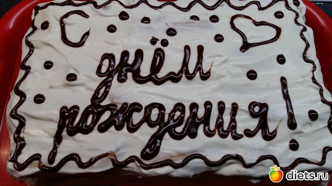 Ну и куда же без тортика в день рождения, испекла конечно же сама, любимый торт "Дамские пальчики", украшатель из меня еще тот, но самое главное вкусно, по-домашнему и муж доволен
