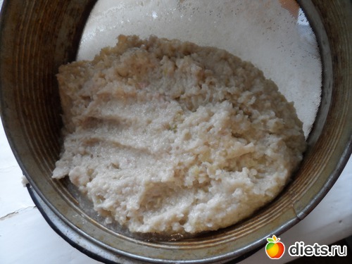 Сначала, пропускаем через мясорубку сало, картошку, лук. Солим, перчим. Фарш, перекладваем на сито, чтобы лишний сок стёк.