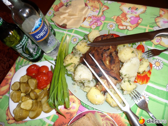 Сегодня в нашем меню-пельмени с скартошкой и салом, рассольник, и на ужин свиная рулька.