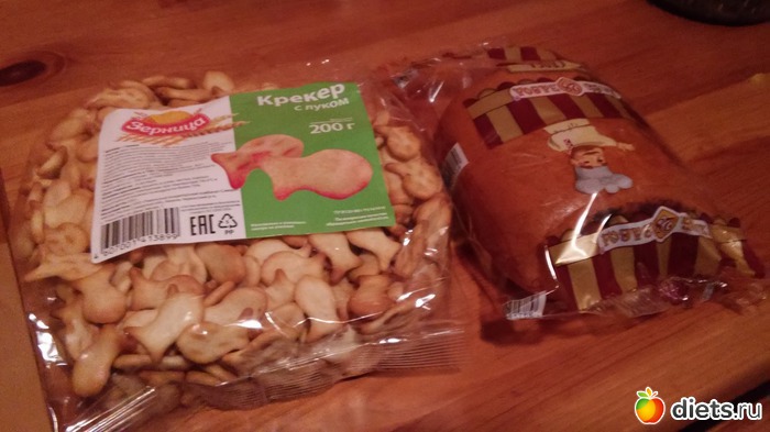 Должна же я себя как то радовать!!! Еще в магазине я поняла что мой организм не просто хочет есть, а просто требует!!! Потом поехали в авто 49 (магазин все для машин).. Муж лампочки покупал! В этом магазине меня начало уже тошнить, на столько я хотела есть!! Выпив водички, мы пошли в пятерочку за хлебом!!! И тут я решила сразу присмотреть, чтобы мне съесть на ужин углеводного, то есть на сегодня!!! От голода, я взяла 2 пачки печенья и булку!!!