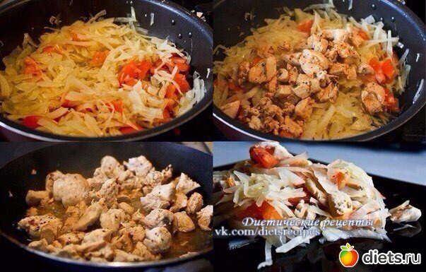 Курица с капустой и помидорами