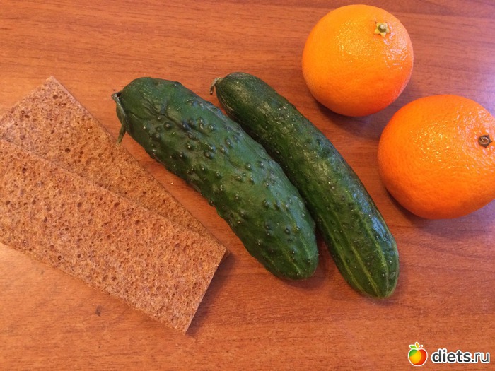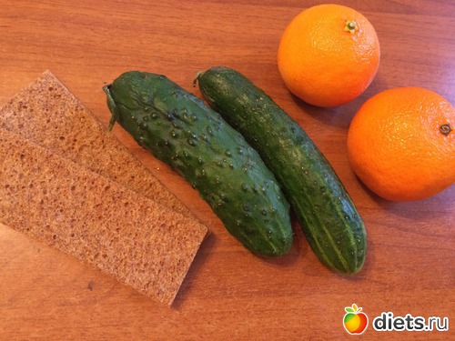 Полдник: 2 огурца + 2 криспа + 2 мандаринки. Итого: 146 ккал.