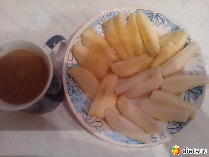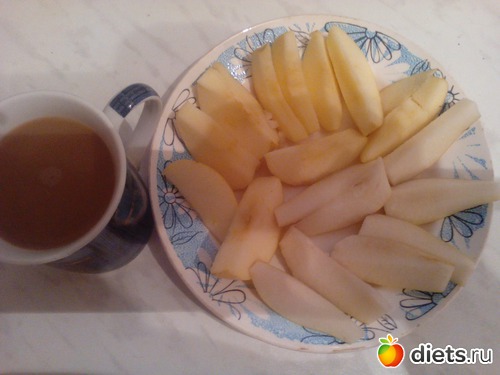 Завтрак: яблоко, груша, кофе с молоком без сахара.