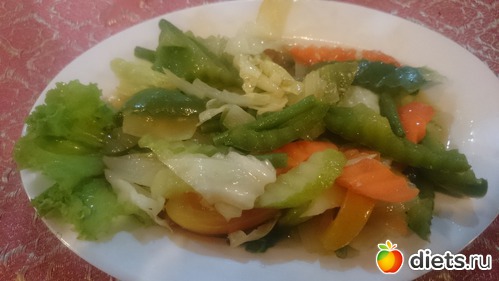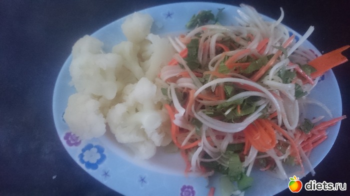 В 16-30 цветная капуста 150 грамм, салат из дайкона с морковкой 150 грамм. (съела наверное по 100 грамм, больше не захотелось)