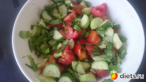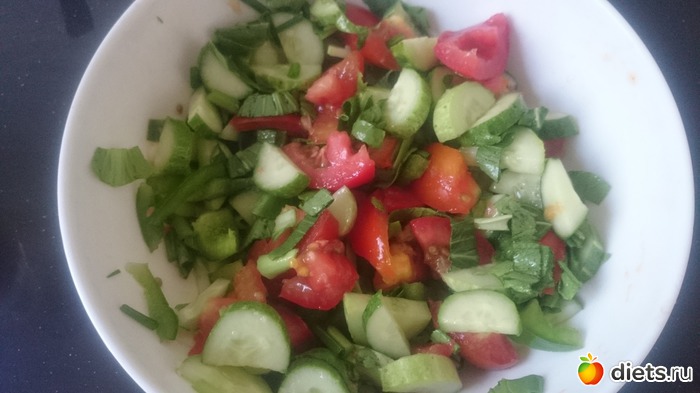 Завтрак в 9 утра, салат из свежих овощей 400 грамм