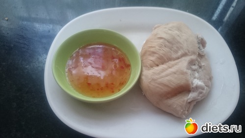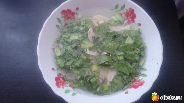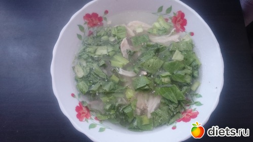 В 11-30 - 100 грамм грудки с бульоном и зеленью.