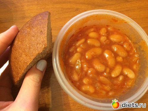 Ужин: фасоль из печи (покупная; вкусная, но очень уж соленая) - 200 гр, хлеб Сергеевский - 51 гр.