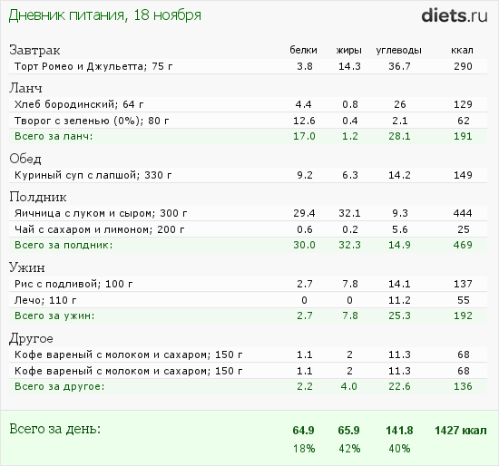 Калорийность продуктов