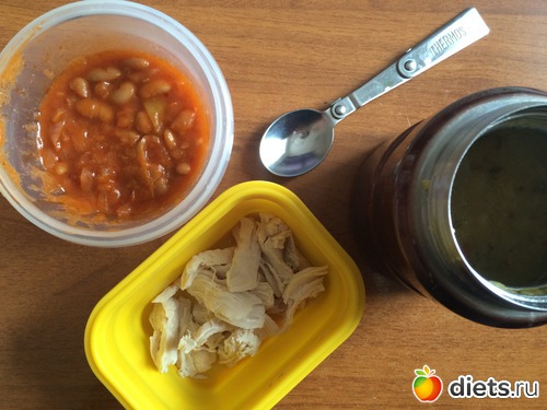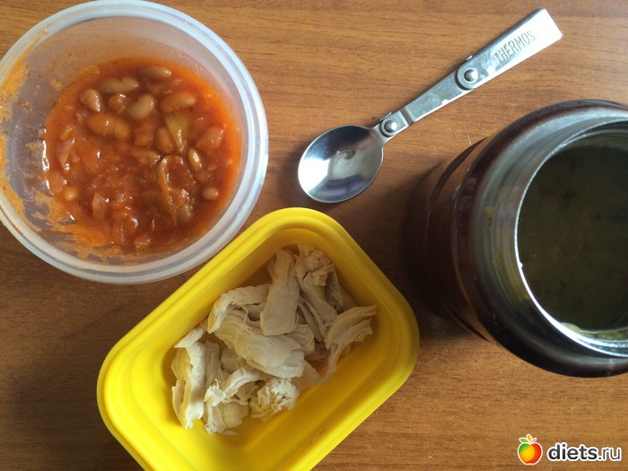 Обед: суп Масурдал - 332 гр, фасоль из печи - 107 гр, куриная грудка отварная - 54 гр.