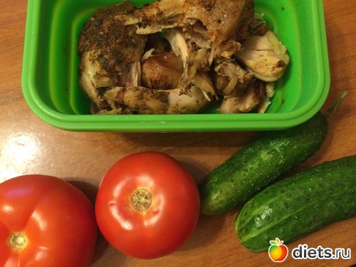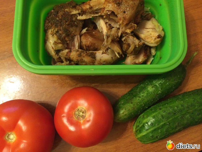 Ужин: куриные голени с паприкой - 156 гр, помидоры - 230 гр, огурцы - 134 гр.