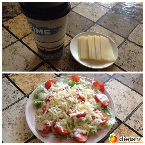 Вчера было: кофе с молоком, чай, кефир с клубникой, еще кефир и вечер закончился кружкой Американо с молоком и кусочками сыра...