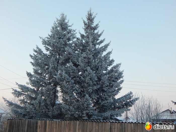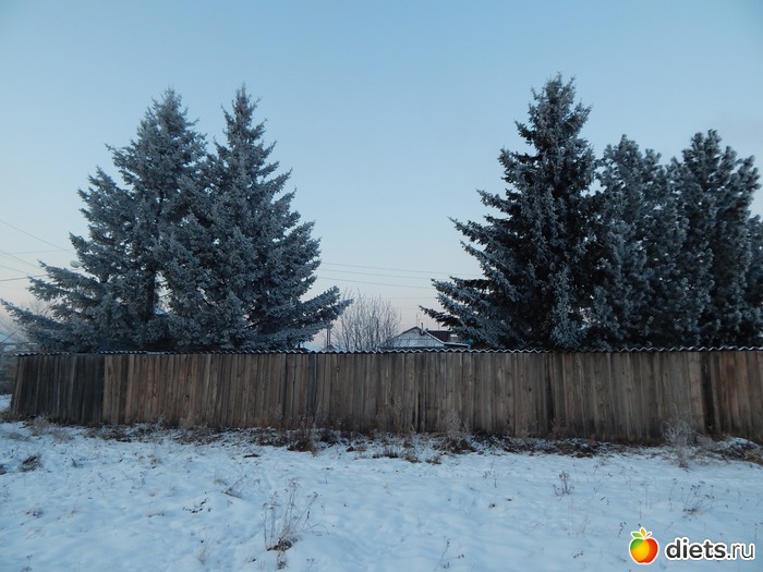 Уже подъезжая к дому, не смогла оставить без внимания соседские елки!