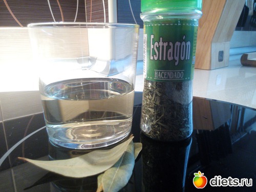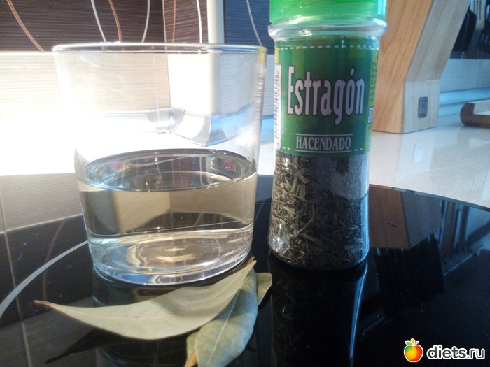 Вылить туда же томат и снова добавить огня. Минут через 7-10, когда томат испарит лишнюю жидкость и сменит цвет на тёмно-красный, влить вино и добавить лавровый лист (у меня его много, потому что листочки мелкие. Достаточно 1 крупного листа) и эстрагон
