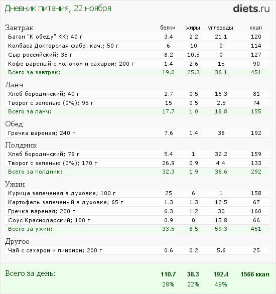 Калорийность продуктов