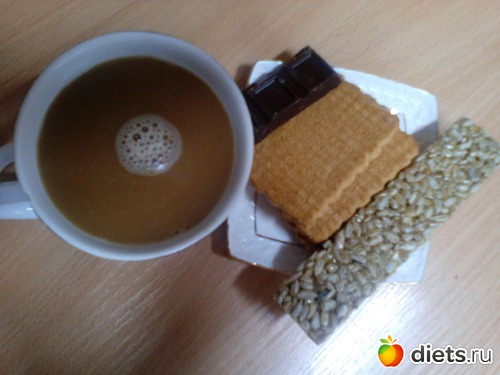 Ужин: печенье, горький шоколад, казинак, кофе с молоком