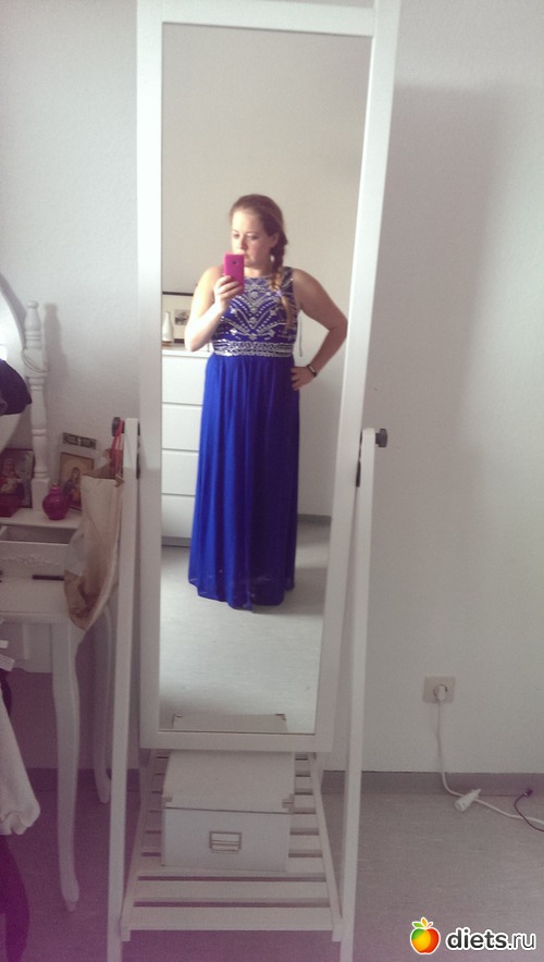 К слову "свадебное" - 52 немецкого размера, "новогоднее" - 14 английского (42 немецкого). Это платье мой подарок... в прошлом году в новогоднюю ночь я случайно загадала желание "похудеть"! И мечтала купить себе красивое синее платье... Мечта сбылась))) Продолжаю худеть дальше)