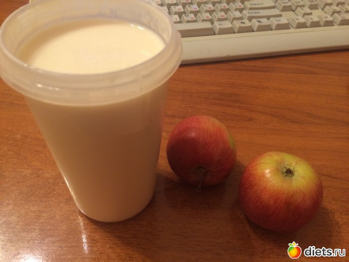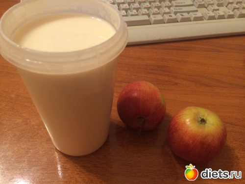 Ужин: ряженка 1% - 317 гр, яблоки - 112 гр.