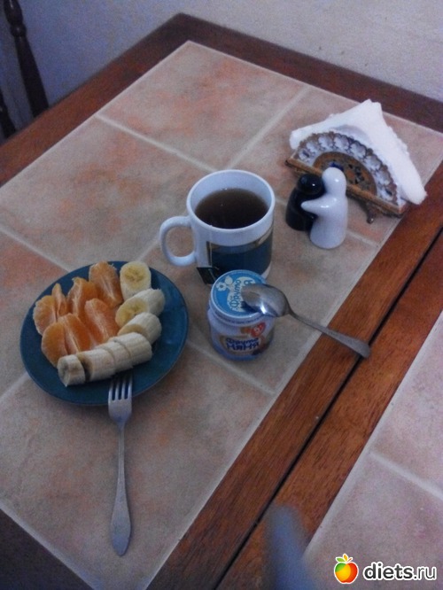 хотела есть пила чай с молоком, мне очень комфортно с молокочаем. Я не большой фанат фруктов на завтрак мне их и так хватает.