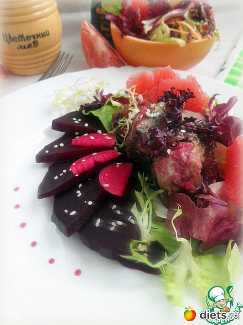 Теплый свекольно-грейпфрутовый салат с печенью