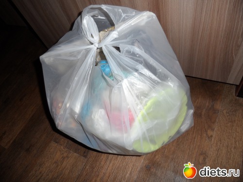 Пакет в котором чего только нет, от касеты из под яиц, до пары замечательных шлёпок, которые уже года три не ношу
