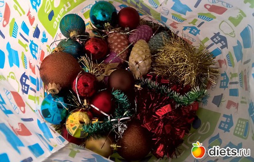 И так у меня день первый. Сегодня перебирала елочные игрушки и мишуру. Набрался почти целый пакет претендентов в мусор. Так что его сегодня будем считать как за одну единицу