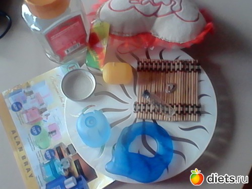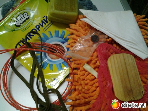 леска,шнурочек, салфетка,,пуговка.мыльница,какая-то насадка,сеточка, деревяшка