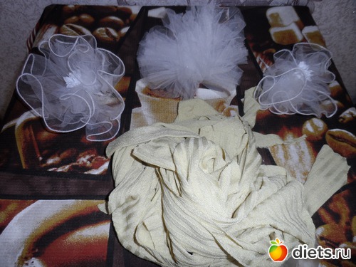 Школьниц в доме нет, а банты всё лежат. Остатки и обрезки ткани-всёв мусорный пакет.