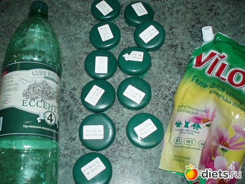 Бутылка,крышки.упаковка из-под геля для стирки.Итого 13 предметов.