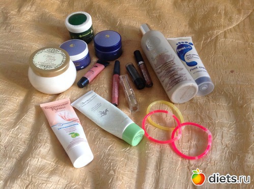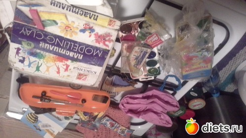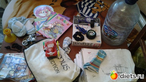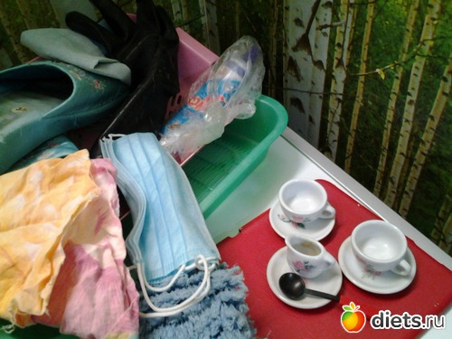 Решетки из лотков котярки 2шт, рез.перчатка 1шт., тапочки, две тряпицы, гель Фас, чехол от планшета(купила новый), детская посуда-пристрою соседскому малышу, мед. маска, ещё одна мочалка