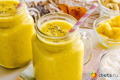 Этот удивительный коктейль также содержит кокосовое масло, которое полно лауриновой кислоты, как и кокосовая вода, помогающей сбалансировать уровень холестерина. Только, перед добавлением в коктейль, растопите кокосовое масло, иначе Вы будете ловить не очень приятные комки!