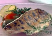 При подаче рыбу выложите на блюдо, гарнируйте припущенными овощами, оформите ломтиками лимона и зеленью.