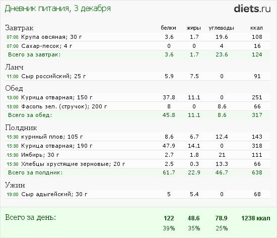Сегодня я так. С утра бегала по делам: парикмахерская, мед. осмотр, отдел кадров, ездили в магазин ребенку подарок покупать. В общем не успела наесть свою норму! Ладно хоть в перерыве на обед позаниматься успела! А то вчера не позанималась, думала сегодня лучше себя чувствовать буду (после прививки), но увы состояние не айс.