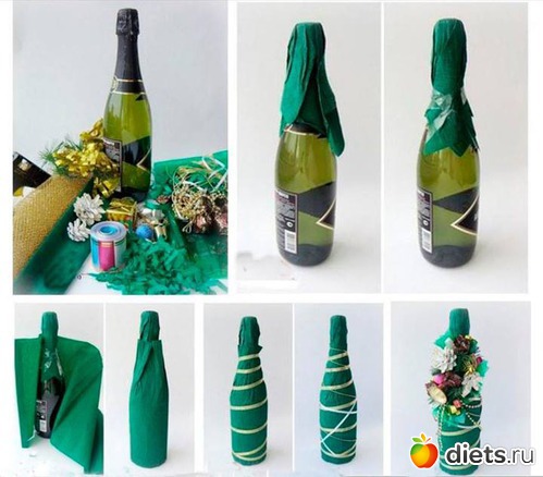 А в прошлом году, мы с дочкой бутылки с шампанским украшали
