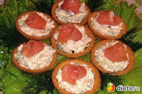 3.Всё соединить+майонез,выложить на тарталетки,украсить по вашему желанию.